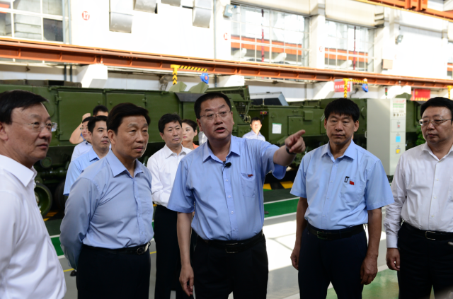 圖為李源潮(左二)在一機集團調(diào)研。 9月3日下午,中共中央政治局委員、國家副主席李源潮在內(nèi)蒙古自治區(qū)黨委副書記、政法委書記李佳,包頭市委副書記、代市長趙江濤等陪同下到中國兵器工業(yè)集團內(nèi)蒙古第一機械集團有限公司調(diào)研。 調(diào)研過程中,一機集團董事長、黨委書記白曉光向李源潮詳細(xì)介紹了一機集團60多年來的發(fā)展歷程、獲得的主要榮譽和軍民品結(jié)構(gòu)等方面情況以及信息化管理和智能制造在總裝生產(chǎn)線上的應(yīng)用情況。李源潮邊聽介紹邊不時地插話詢問,了解企業(yè)的人員總量、各種產(chǎn)品技術(shù)性能特點、生產(chǎn)管理水平等情況。當(dāng)了解到一機集團作為我國唯一的主戰(zhàn)坦克和8×8輪式戰(zhàn)車研制生產(chǎn)基地,并為我國裝甲裝備的建設(shè)做出了重要貢獻(xiàn)后,連聲說:“你們一機了不起,很了不起?!?/p> 來到國家級技能大師工作室駐軍品總裝工作站,李源潮與技能大師盧仁峰和張學(xué)海親切握手交談。當(dāng)?shù)弥髧そ潮R仁峰在克服自身殘疾的情況下不僅練就了精湛的焊接技藝,而且還為公司培養(yǎng)了許多年輕的焊接技術(shù)人才時,高興地握著盧仁峰的手說:“好啊,你很不容易啊,大家都要向你學(xué)習(xí)?!崩钤闯边€親切地詢問了工作站每一位青年職工的學(xué)習(xí)、工作、生活情況。看到這些青年職工飽滿的精神狀態(tài)時,李源潮動情地說:“勞動者最光榮,你們是第一線的勞動者,是真正為國家做出貢獻(xiàn)和創(chuàng)造價值的。你們年輕人一定要把大國工匠和勞動模范的班接好,為企業(yè)、為國家多做貢獻(xiàn)?!?/p> “你們公司現(xiàn)在有多少名團員青年,平時團組織都有什么活動?”在五分公司503車間團支部建設(shè)園地前,李源潮仔細(xì)詢問了解一機集團的共青團工作開展情況。他還非常認(rèn)真地從公司團干部手機中仔細(xì)了解了一機集團團委落實團中央“1+100”團干部聯(lián)系青年制度的開展情況,勉勵團干部改進作風(fēng),更好地直接聯(lián)系服務(wù)青年。 在總裝生產(chǎn)線,李源潮興致勃勃地登上公司最新研制生產(chǎn)的99A坦克,向白曉光詳細(xì)詢問了坦克自動裝彈系統(tǒng)、防護性能、火炮威力等各項戰(zhàn)技指標(biāo)情況。 在五分公司觀禮臺前,三輛不同型號鐵甲戰(zhàn)車轟鳴著駛過,李源潮高興地不停鼓掌。隨后,李源潮還認(rèn)真了解了現(xiàn)場擺放的各種型號的裝甲戰(zhàn)車的有關(guān)情況。 調(diào)研結(jié)束時,李源潮握著白曉光的手說,“謝謝一機集團的干部職工為我國國防事業(yè)做出的重要貢獻(xiàn),請代我向全體干部職工問好”。(朱小萌)