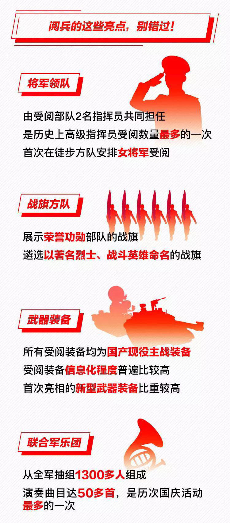 為慶祝新中國成立70周年,10月1日北京天安門廣場將舉行盛大閱兵式。屆時,32個裝備方隊、12個空中梯隊將通過天安門廣場,接受檢閱。此次閱兵,所有受閱裝備均為國產(chǎn)現(xiàn)役主戰(zhàn)裝備,其中包括我軍部分新型裝備,是近幾次閱兵中規(guī)模最大的一次。 強國必須強軍,強軍必須利器。作為我軍機械化、信息化、智能化裝備發(fā)展的骨干,全軍毀傷打擊的核心支撐和現(xiàn)代化新型陸軍體系作戰(zhàn)能力科研制造的主體,此次國慶閱兵式,兵器工業(yè)集團研制生產(chǎn)的16型裝備將接受黨和人民的檢閱,分布在受閱裝備方隊7個模塊中的陸上作戰(zhàn)、防空反導(dǎo)、信息作戰(zhàn)、無人作戰(zhàn)、后裝保障五個模塊、32個方隊中的12個方隊,集中展示了兵器工業(yè)集團履行強軍首責(zé)、自主創(chuàng)新的最新成果。 10月1日大閱兵 我們準備好了 |
