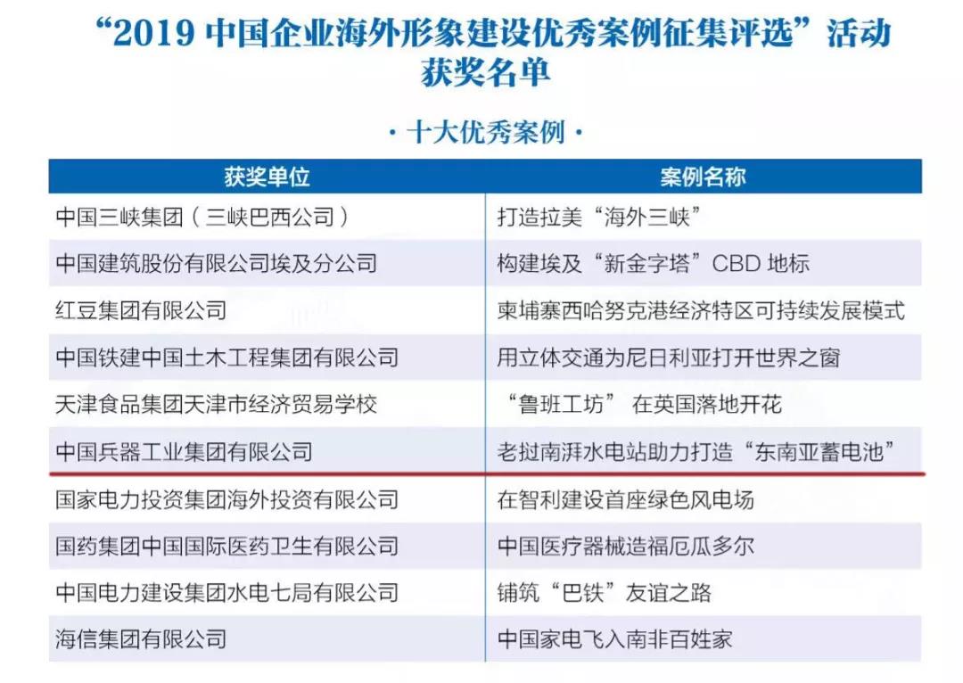 兵器工業(yè)集團(tuán)海外項(xiàng)目榮獲2019中國企業(yè)海外形象建設(shè)十大優(yōu)秀案例及卓越社會(huì)責(zé)任獎(jiǎng) |