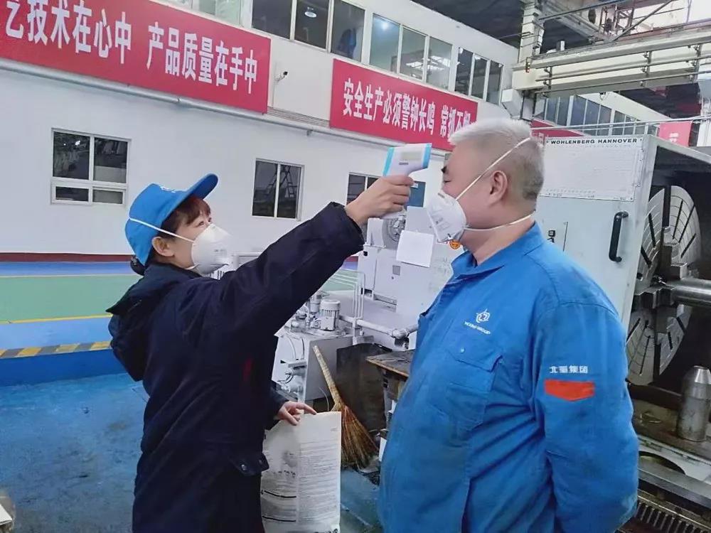 北重集團為在崗工作人員準(zhǔn)備了洗手液、口罩、噴壺等消毒防護器材,對進入廠房人員嚴(yán)格登記和測量體溫,對工作人員一日四次檢測體溫并進行記錄,在做好疫情防控的同時保證生產(chǎn)。