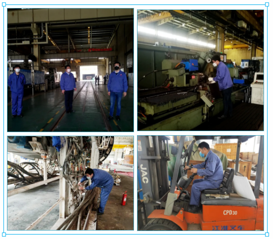 “防疫物資到位、人員排查到位、復(fù)工手續(xù)齊全。疫情防控關(guān)口已下沉到班組,生產(chǎn)正常推進(jìn)?!?/p> 經(jīng)過(guò)緊張有序的前期準(zhǔn)備工作,地處湖北武漢的中國(guó)兵器工業(yè)集團(tuán)武重集團(tuán)正式進(jìn)入復(fù)工復(fù)產(chǎn)狀態(tài)。 3月19日上午8時(shí),首批復(fù)工人員準(zhǔn)時(shí)抵達(dá)公司,戴著口罩,在接受體溫檢測(cè)、手部消毒后,進(jìn)入廠區(qū)。 提前謀劃 打好“雙戰(zhàn)役” 3月13日以來(lái),武重集團(tuán)先后召開(kāi)公司黨委會(huì)議、董事長(zhǎng)辦公會(huì),傳達(dá)學(xué)習(xí)習(xí)近平總書(shū)記考察湖北新冠肺炎疫情防控工作時(shí)的重要講話精神,樹(shù)信心、鼓干勁、戰(zhàn)疫情、促發(fā)展,動(dòng)員全公司上下緊盯全年各項(xiàng)目標(biāo)任務(wù),迎難而上、奮力拼搏,努力把疫情耽誤的時(shí)間“搶”回來(lái),做到貫徹落實(shí)習(xí)近平總書(shū)記重要講話精神更加到位,統(tǒng)籌推進(jìn)疫情防控和企業(yè)發(fā)展更加有效。 為切實(shí)做好公司復(fù)工復(fù)產(chǎn)前后疫情防控,維護(hù)生產(chǎn)經(jīng)營(yíng)正常運(yùn)行,按照復(fù)工有關(guān)要求,公司疫情防控領(lǐng)導(dǎo)小組組織制定了《復(fù)工復(fù)產(chǎn)防控新型冠狀病毒肺炎疫情工作方案》、《疫情防控應(yīng)急預(yù)案》以及疫情期間安全生產(chǎn)、員工管理、進(jìn)出廠區(qū)管理和通勤車(chē)、食堂、消毒等后勤保障工作細(xì)則等文件,配備了口罩、防護(hù)服、測(cè)溫槍、消毒水等防護(hù)用品及應(yīng)急物資,設(shè)置了應(yīng)急隔離區(qū),確保復(fù)工后的防疫所需。 周密部署 筑牢“防疫墻” “復(fù)工任務(wù)雖急,人員安全更重,必須把好人員進(jìn)場(chǎng)第一關(guān)?!痹谌藛T進(jìn)場(chǎng)管控上,武重集團(tuán)建立了這樣一條“硬核規(guī)定”:?jiǎn)T工必須每天通過(guò)企業(yè)微信提交體溫信息,建立員工健康檔案,筑牢復(fù)工“防疫墻”。 在接到復(fù)工批復(fù)后,公司領(lǐng)導(dǎo)多次帶隊(duì)深入生產(chǎn)現(xiàn)場(chǎng),檢查疫情防控工作和復(fù)工前的各項(xiàng)準(zhǔn)備工作,協(xié)調(diào)解決項(xiàng)目在復(fù)工過(guò)程中存在的問(wèn)題,要求通過(guò)優(yōu)化產(chǎn)出計(jì)劃拉動(dòng)復(fù)工復(fù)產(chǎn)體系,使公司上下盡快進(jìn)入達(dá)產(chǎn)達(dá)效狀態(tài)。3月17日到18日,各單位按照各項(xiàng)預(yù)案措施針對(duì)安全、設(shè)備、就餐、消毒、乘車(chē)、住宿、應(yīng)急體系演練、職工隔離工作等方面進(jìn)行全面排查,全力確保疫情防控精準(zhǔn)到位、安全生產(chǎn)有序推進(jìn)。 公司領(lǐng)導(dǎo)到生產(chǎn)現(xiàn)場(chǎng)、職工食堂察看復(fù)工復(fù)產(chǎn)各項(xiàng)準(zhǔn)備工作 做實(shí)做細(xì) 當(dāng)好“排頭兵” 新冠肺炎疫情發(fā)生以來(lái),武重集團(tuán)迅速投身戰(zhàn)“疫”,充分利用武重集團(tuán)“大國(guó)重器”技術(shù)及加工能力優(yōu)勢(shì),多次為火神山醫(yī)院、雷神山醫(yī)院建設(shè)、防疫物資加工等急難險(xiǎn)重任務(wù)貢獻(xiàn)力量,展示了武重人“召之即來(lái),來(lái)之能戰(zhàn),戰(zhàn)之必勝”的優(yōu)良作風(fēng)。 隨著復(fù)工的啟動(dòng),武重集團(tuán)生產(chǎn)指揮系統(tǒng)迅速重新編制了年度施工進(jìn)度計(jì)劃,將延誤工期時(shí)間分解到各個(gè)施工階段,保證施工節(jié)點(diǎn)任務(wù)完成,多個(gè)重大項(xiàng)目將從“暫?!蹦J角袚Q為“快進(jìn)”模式,加快復(fù)工復(fù)產(chǎn)。 進(jìn)入工作區(qū)前進(jìn)行體溫測(cè)量及消毒 復(fù)工單位開(kāi)展班前會(huì) 各單位復(fù)工有序進(jìn)行 食堂用餐避免扎堆 武重集團(tuán)將以鏗鏘的步伐、昂揚(yáng)的斗志,聚焦重點(diǎn)項(xiàng)目,全力以赴做好復(fù)工復(fù)產(chǎn)各項(xiàng)工作,繼續(xù)發(fā)揮好大國(guó)重器、央企頂梁柱作用,奮力奪取疫情防控和企業(yè)發(fā)展雙勝利。(武重集團(tuán)) |