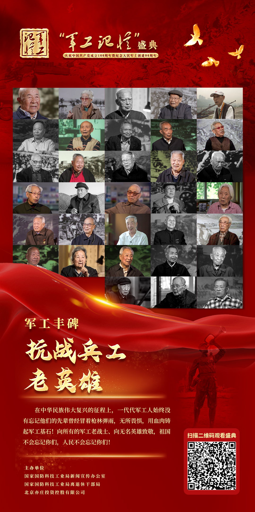 為慶祝中國(guó)共產(chǎn)黨成立100周年和紀(jì)念人民軍工事業(yè)創(chuàng)建90周年,國(guó)防科工局新聞宣傳辦公室、國(guó)防科工局離退休干部局、北京亦莊投資控股有限公司聯(lián)合主辦,各軍工集團(tuán)公司和中物院協(xié)辦的“軍工記憶”特別節(jié)目,于7月31日正式在央視頻上線。