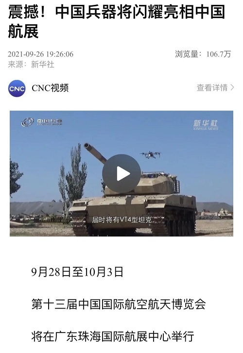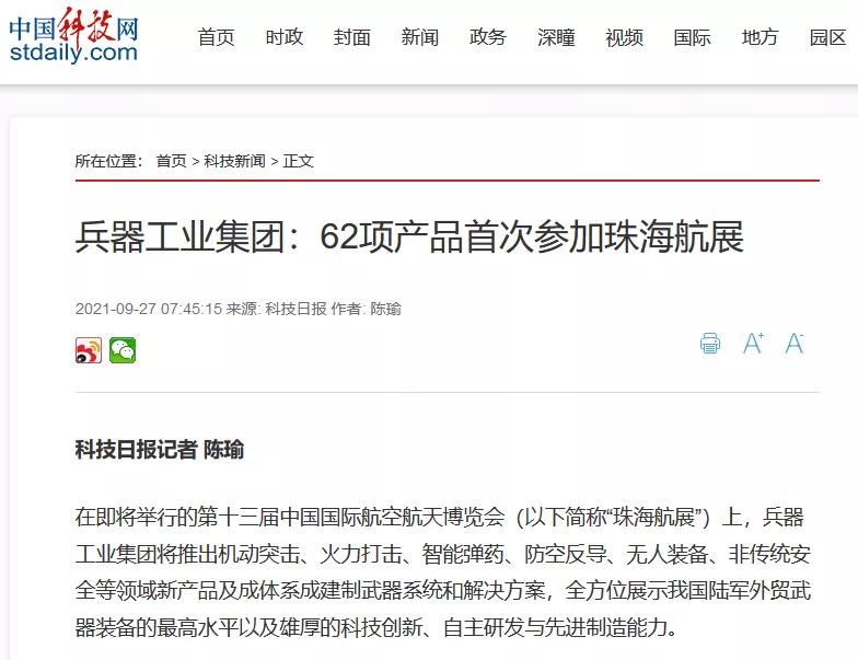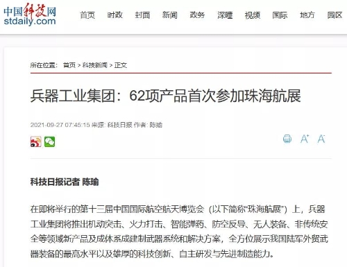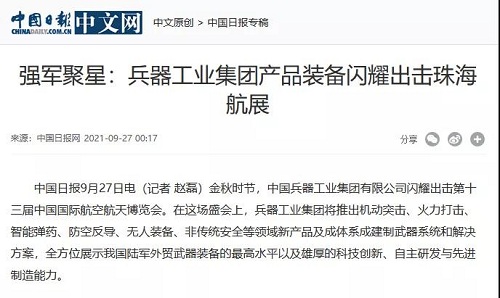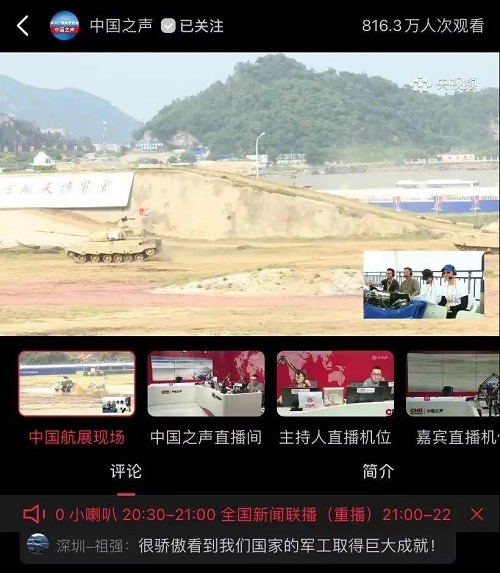 央視《新聞聯(lián)播》關(guān)注航展公眾日中國(guó)兵器館情況