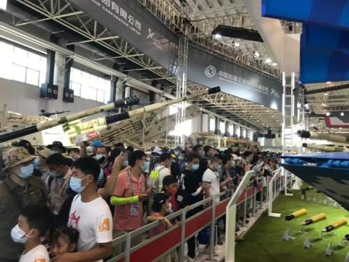 航展期間,備受關(guān)注的中國(guó)兵器館,參觀的觀眾絡(luò)繹不絕。
