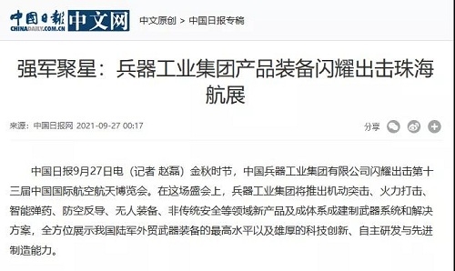 9月28日-10月3日,第十三屆中國(guó)國(guó)際航空航天博覽會(huì)在廣東珠海舉行,中國(guó)兵器工業(yè)集團(tuán)有限公司作為主辦單位閃耀亮相,推出裝甲突擊、火力打擊、智能彈藥、防空反導(dǎo)、無(wú)人裝備、非傳統(tǒng)安全、軍工軍技合作等領(lǐng)域新產(chǎn)品及成體系成建制武器系統(tǒng)和解決方案,全方位展示我國(guó)陸軍外貿(mào)武器裝備的最高水平以及雄厚的科技創(chuàng)新、自主研發(fā)與先進(jìn)制造能力,受到廣泛關(guān)注。