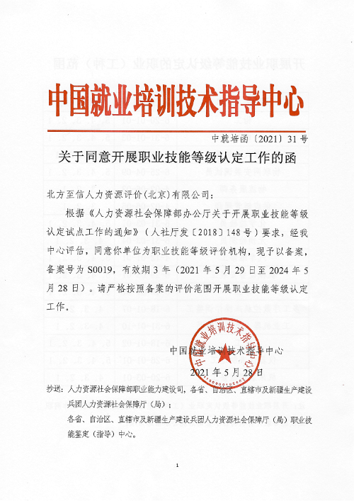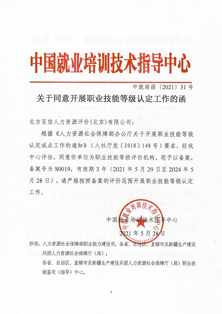 5月28日,人力資源社會(huì)保障部中國就業(yè)培訓(xùn)技術(shù)指導(dǎo)中心發(fā)布了《關(guān)于同意開展職業(yè)技能等級(jí)認(rèn)定工作的函》(中就培函〔2021〕31號(hào)),北方至信人力資源評(píng)價(jià)(北京)有限公司(以下簡稱“北方至信”)成為首家央企全國性社會(huì)培訓(xùn)評(píng)價(jià)組織職業(yè)技能等級(jí)認(rèn)定機(jī)構(gòu)。