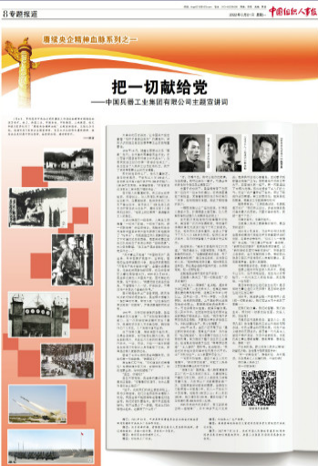 1月6日,貫徹落實(shí)中央企業(yè)黨的建設(shè)工作座談會精神專題推進(jìn)會在京召開。會上,中國兵器工業(yè)集團(tuán)有限公司等5家單位作了“賡續(xù)央企精神血脈”主題宣講報(bào)告。3月21日,《中國組織人事報(bào)》刊發(fā)賡續(xù)央企精神血脈系列之一——《把一切獻(xiàn)給黨——中國兵器工業(yè)集團(tuán)有限公司主題宣講詞》。