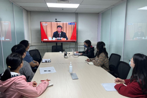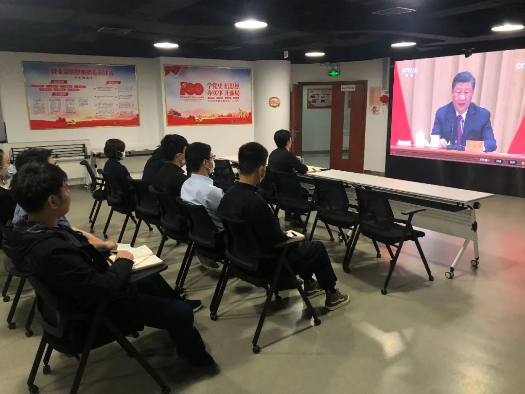 ▲北化研究院集團(tuán)團(tuán)委組織團(tuán)員青年收看現(xiàn)場(chǎng)直播